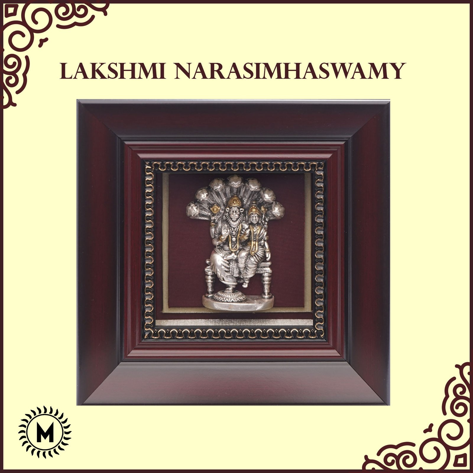 This divine Lakshmi Narasimhaswamy Idol at 20 Gm depicts Lord Narasimha (the half-man, half-lion incarnation of Lord Vishnu) with Goddess Lakshmi. This revered form symbolizes fierce protection, immense strength, and the blessings of wealth. This piece is a powerful addition to your collection, bringing both spiritual and material well-being.