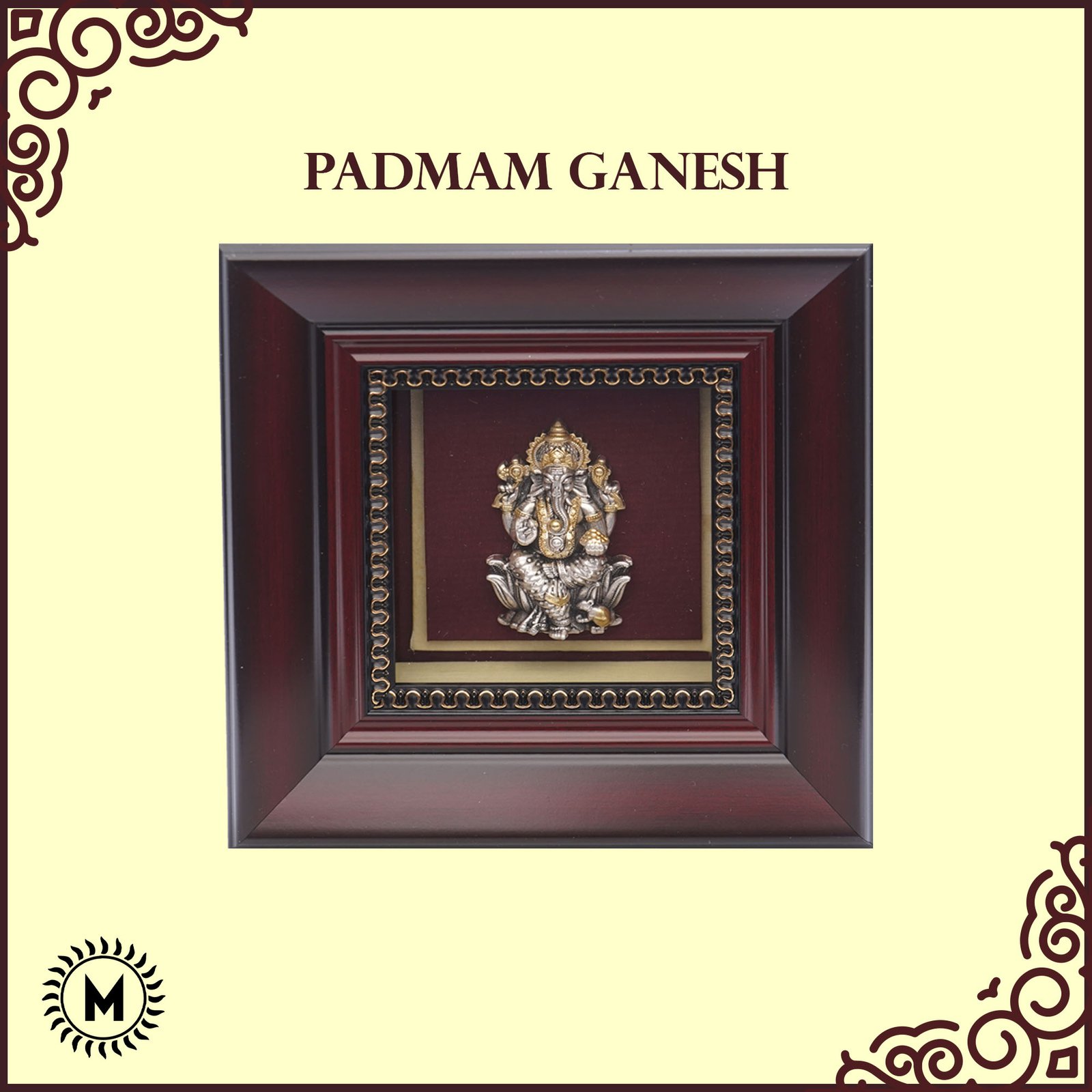 This exquisite Padmam Ganesh Silver Frame features Lord Ganesh gracefully seated on a lotus (Padmam). Crafted with a weight of 10 Gm, this idol is a symbol of prosperity and the remover of obstacles. The elegant silver frame serves as a beautiful backdrop, making it a perfect gift for new ventures or a sacred addition to your pooja room.