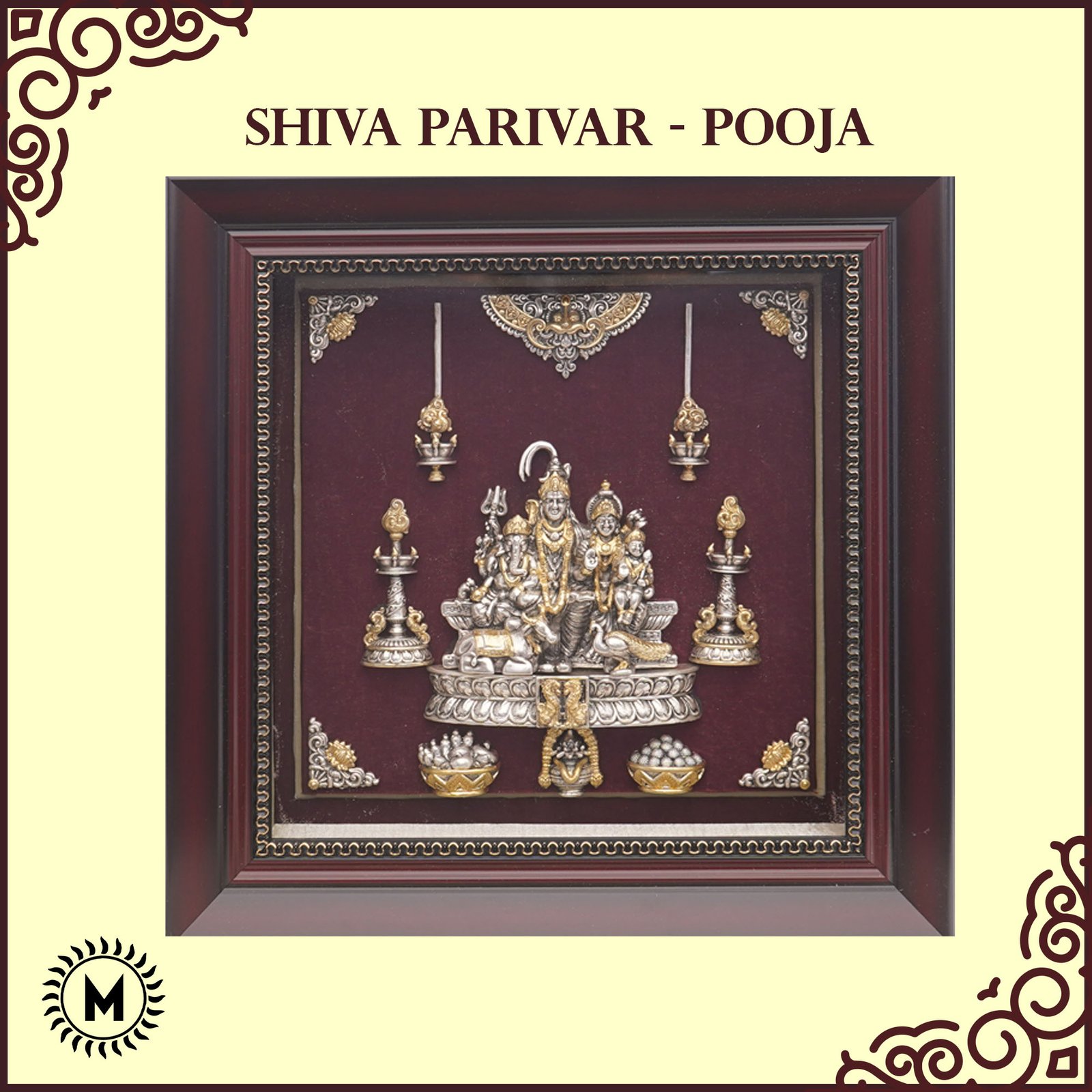This magnificent Shiva Parivar Pooja Idol at 110 Gm is a powerful and impressive centerpiece for auspicious rituals. The idol depicts the divine family of Lord Shiva, Goddess Parvati, and their sons, symbolizing spiritual harmony and divine blessings. Its grand size and intricate detailing make it a majestic addition to any pooja room, bringing peace and prosperity to the home.
