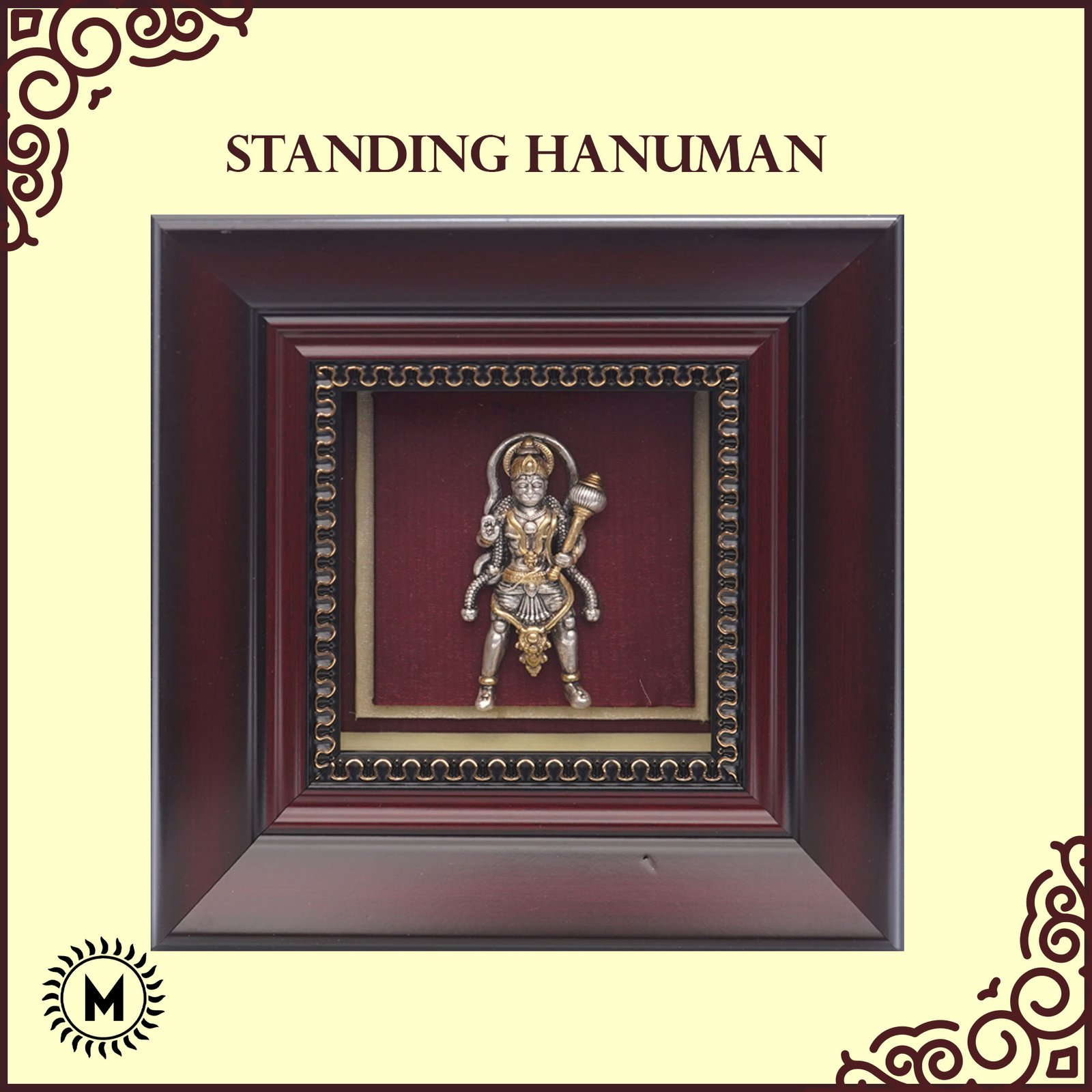 This powerful Standing Hanuman Idol at 8 Gm is a compact and elegant representation of Lord Hanuman. The idol's dynamic pose symbolizes his unwavering devotion and immense strength. This piece is a perfect reminder of faith and courage, making it an ideal gift or a sacred addition to your home or office desk.